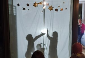 Als Teil der kirchlichen Aktion "Advent im Süden" führten unsere Oikos-Kinder unter der Anleitung von Claudia Paschmann ein Schattentheater zum Sterntalermärchen auf. In wunderschöner Atmosphäre wurde der Abend mit vielen in unserem Durchgang stehenden oder sitzenden Gästen ein voller Erfolg. Jeder ging mit einem Goldtaler oder glänzenden Stern und dem Wunsch, ebenfalls unter einem "guten Stern" leben zu können, nach Hause.