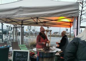Mit einem Zuckerwattestand und trotz Regen guter Laune beteiligten wir uns am Spinelli Weihnachtsmarkt. Mit seinem Pendant am Wasserturm kann dieser natürlich noch nicht mithalten, schön und stimmungsvoll war es trotzdem.